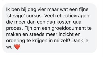 Dat je je sterk voelt en veelal in je kracht staat, en vanuit die kracht je leven en uitdagingen tegemoet gaat.