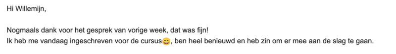Dat je je opgeruimd voelt en meer in control over je leven, je doelen, de keuzes die je maakt en hoe je je tijd besteedt.